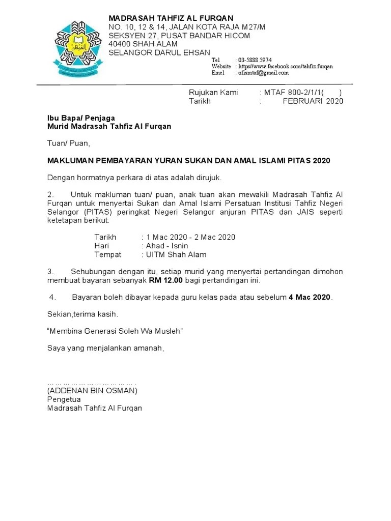 Contoh Surat Makluman Bayaran Yuran : Surat Edaran Pikm Ke 13 2019 Makluman Pertukaran Nama Baharu Akaun Bank Pikm Pikm My. Anggaran kadar bayaran yuran ambil lesen kereta atau motosikal berikut adalah anggaran kadar bayaran yuran keseluruhan untuk mengambil lesen kereta atau motosikal mengikut kelas sebagai makluman, harga maksimum (harga munasabah) adalah tidak melebihi rm450 (lesen motosikal b2), rm1,100 (lesen motosikal b), rm1,300 (lesen kereta d) dan rm1,500.